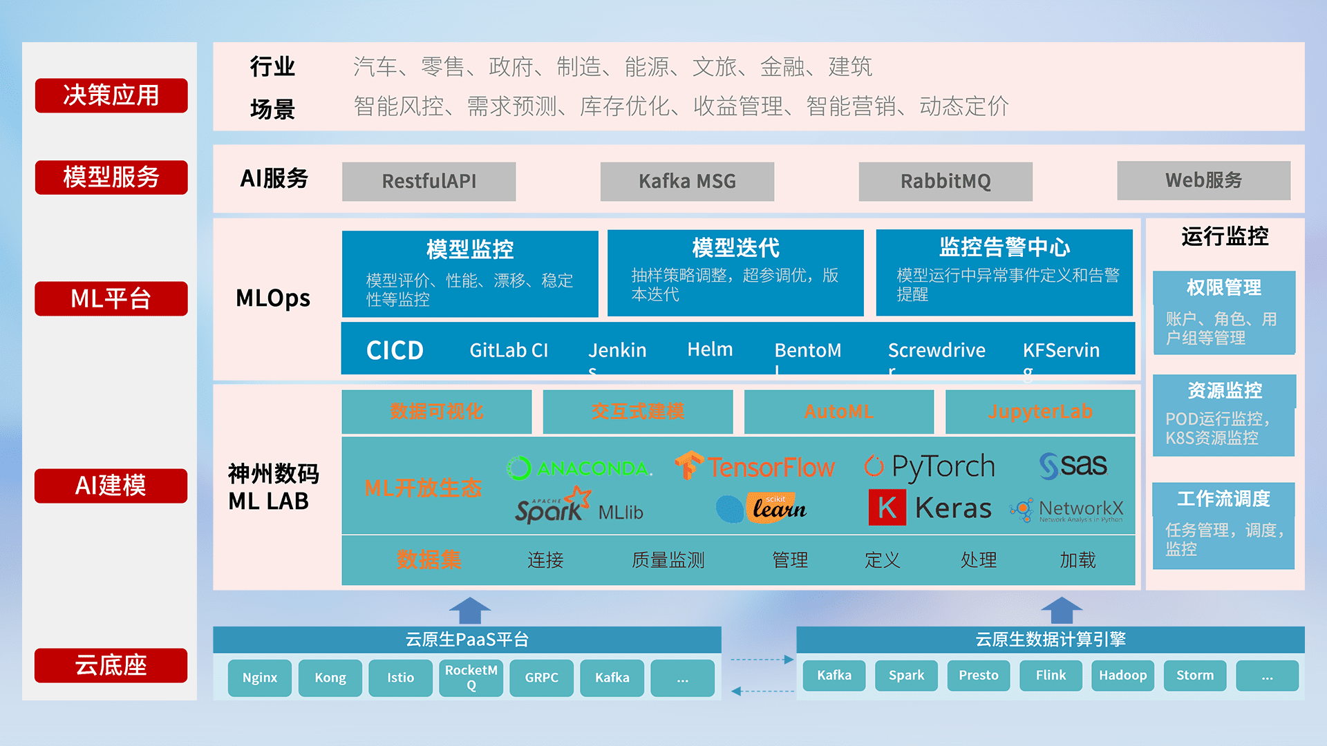 数据+模型双引擎驱动,,,面向智能服务场景,,快速灵活利用AI技术,,,支持业务决策,,助力企业智能化转型破局。。